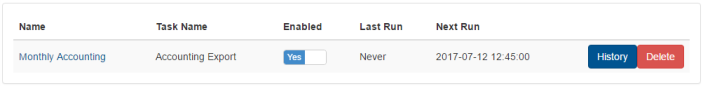 - The new scheduled task appears on the Schedule Tasks screen, and you can view the Next Run column to determine when the task will run next.